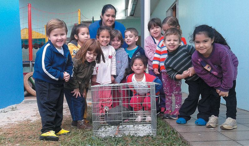 Pais de alunos participam levando uma sacola para casa com uma galinha de angola de tecido, uma boneca e um caderno com a história. Esse caderno possui, também, uma ficha para ser preenchida na presença dos filhos. Em um trecho da história, que conta a afetividade entre a avó e a neta, é achado um baú que possui coisas que para a avó são valiosas. Na ficha anexada ao caderno, pede-se aos pais escreverem o que gostariam de guardar em um baú que fosse aberto daqui a alguns anos e lembrado. Contação de história “João e Maria” pela voluntária Deise. Dramatização da história “A Cigarra e a Formiga” pela educadora infantil Marta Richciki Camargo.