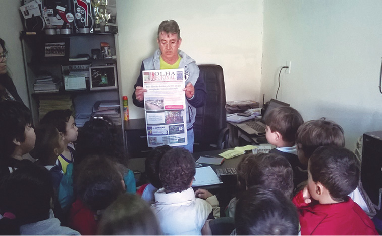Visita à redação do Jornal Regional do Município de Astorga sob a responsabilidade de Nelson Salvo. Entrevista com Secretário Municipal de Esportes do Município de Pitangueiras José Carlo Barbosa. Atividade desenvolvida com a professora de Educação Física Fernanda Carolina Araújo Carvalho.