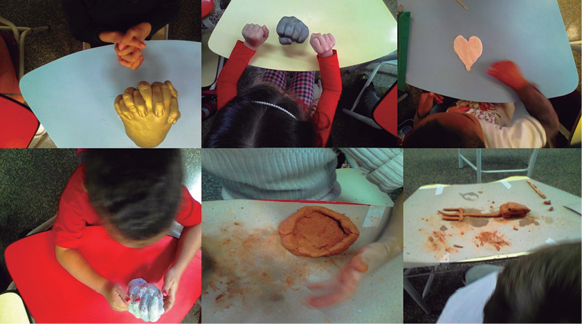 Linguagem Plástica: apreciação e releitura de obras de arte; Percepção na produção plástica: cor (tintas, corantes), forma (objetos que pudessem ser moldados), textura (biscuit, papel, argila); Registro de ideias e significados: do bidimensional (desenho) ao tridimensional (escultura).