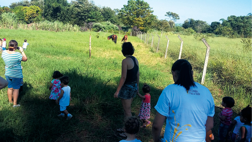 O passeio no sítio foi divertido, as crianças ficaram encantadas com os animais e com o lugar, é diferente do cotidiano em que vivem. Fomos de ônibus, passamos por diversos pontos da cidade; lá os mais variados animais e as crianças ficaram maravilhadas e surpresas com animais que nunca tinham visto.