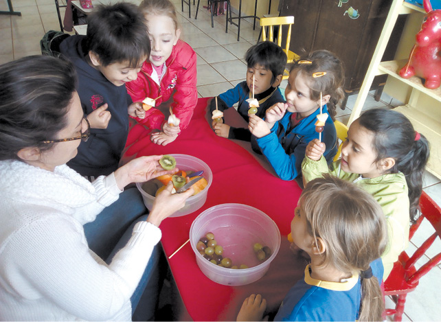 Foi somada com a vinda da nutricionista, que teve uma conversa com os alunos sobre a importância que as frutas fazem quando incluídas no cardápio da nossa alimentação, assim como, as vantagens de quem troca um lanchinho não saudável (como salgadinhos e balas) por frutas. Além disso, foram montados espetinhos com as frutas que algumas crianças conheciam e outras não, dentre elas o caqui, o kiwi, a uva e a pera.