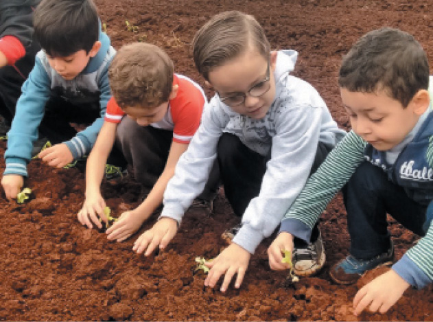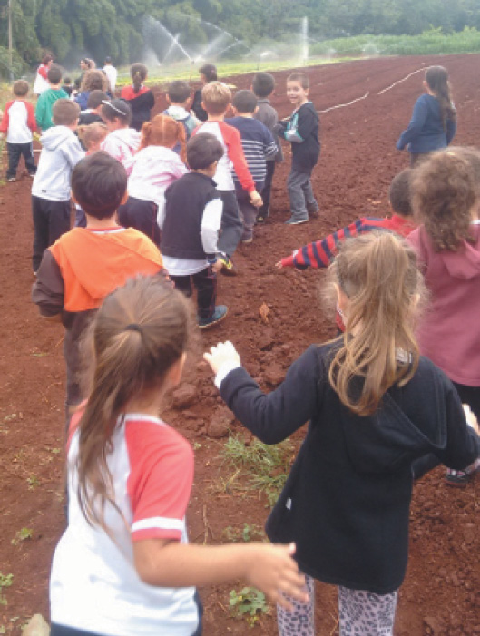A expedição investigativa foi realizada em um sítio localizado a 3 km do CMEI, onde havia o cultivo de hortaliças e árvores frutíferas.