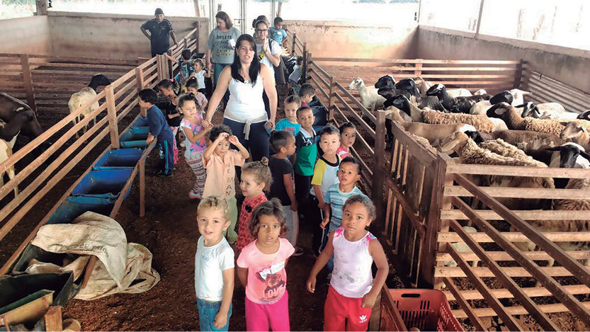 A expedição investigativa foi realizada em um sítio próximo à escola. As crianças foram recebidas pelos donos do sítio que foram mostrando os animais: ovelha, galinha, peixes, pato, cachorro, pássaros diversos. As crianças puderam ir perguntando e apontando as coisas que lhes interessavam.