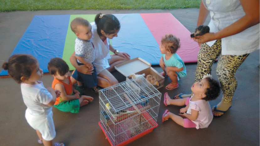 Identidade e Autonomia: Participação em pequenas tarefas cotidianas; Linguagem oral e escrita: Rodas de conversas e contação de histórias; Música: Músicas infantis sobre animais; Movimento: Atividades que envolvam motricidade fina e ampla; manuseio de animais; Matemática: Calendário; contagem das crianças; quantidades; Natureza e Sociedade: Meio ambiente; Animais domésticos, selvagens e nocivos; Artes visuais: Atividades de registro; pintura de desenhos de animais.