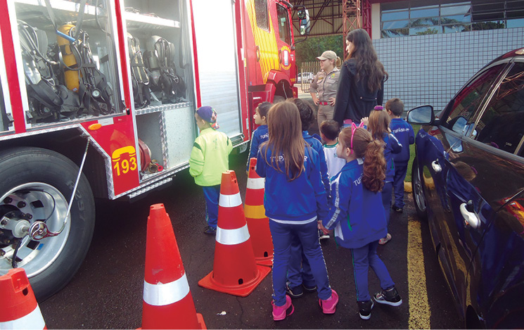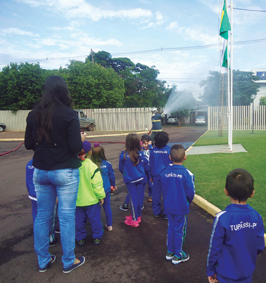 Palestra “Segurança na Escola” com o Cabo Gabriel Dias, para todas as turmas sobre a função do extintor; Vídeos educativos relacionados com o tema prevenção de acidentes; Atividades práticas de princípios fundamentais de primeiros socorros na escola; Histórias infantis sobre os bombeiros.