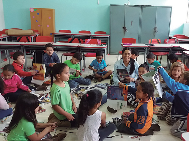 A estagiária Raquel da Silva Pinto através de uma roda da conversa deu explicações visuais sobre a diferença entre os símbolos e os códigos linguísticos.