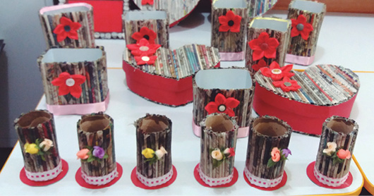 Foi realizada uma pesquisa com os pais para saber se eles conheciam algum artesanato que poderia ser feito com jornal ou retalhos de tecido.