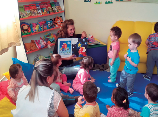 EIXOS: Identidade E Autonomia; Corpo E Movimento; Intercomunicação e Linguagens;Através da música, teatro, dramatização e fantoches, a contação de histórias foi realizada, buscando atrair a atenção da criança para aquele momento.