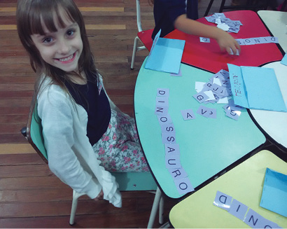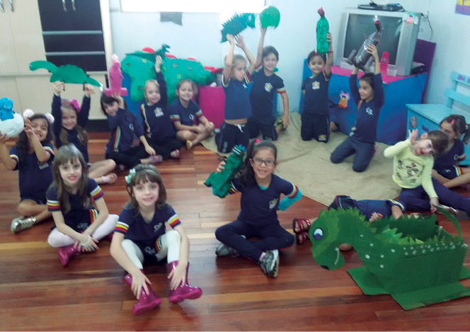 Organizamos uma sala temática na escola com os brinquedos, livros e demais materiais sobre os dinossauros, que os alunos trouxeram de casa. Os alunos seguiram as pegadas dos dinossauros para chegar até a sala temática. Contamos histórias envolvendo os dinossauros e fizemos diversas brincadeiras!