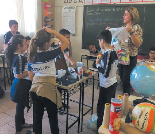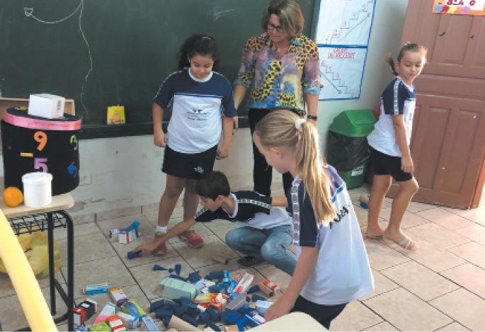 ARTICULAÇÃO COM A COMUNIDADEAula ministrada pela professora Maria Ângela Zampieri Gimenez, na qual foram apresentadas atividades sobre os sólidos geométricos. Durante a aula, ela realizou jogos e brincadeiras, desta forma os alunos entenderam como a geometria está presente no nosso dia a dia e mostraram interesse em saber mais.