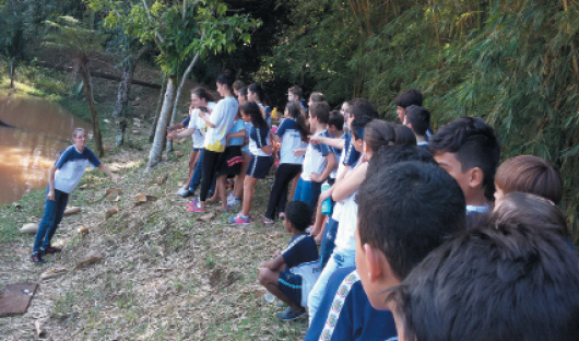 A expedição aconteceu no pesqueiro Vale Verde, observando as dependências do local, envolvendo fauna e flora, onde os alunos respondiam aos questionamentos realizados pelas professoras. Os mesmos deveriam analisar o trajeto e concluir se o que viam era nativo no local ou produzido pelo homem.