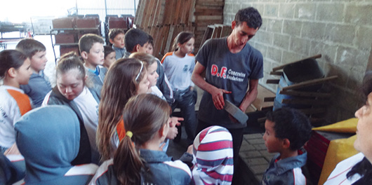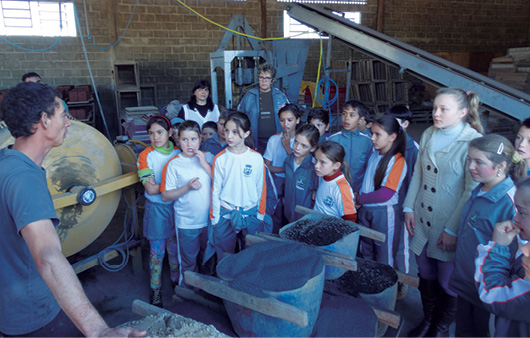 Durante a realização da expedição investigativa, Pedro Fermiani, mestre de obras e dono da fábrica, comentou sobre as vantagens, as matérias-primas usadas, a quantidade de materiais usados e respondeu aos questionamentos e curiosidades das crianças referentes às máquinas e fabricação dos blocos.