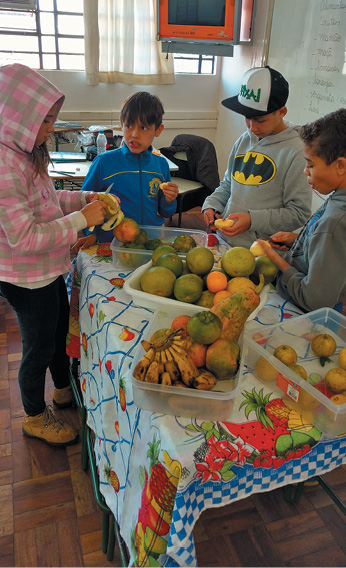 As crianças e a professora elaboraram um questionário sobre alimentação saudável e fizeram uma pequena entrevista com os alunos. Em seguida, visitaram o supermercado, onde fizeram uma lista de frutas e legumes que eles elegeram na feira do supermercado. Quando voltaram para a sala de aula, elaboraram um gráfico com as frutas que as crianças mais gostavam e votaram entre frutas x legumes mais gostosos para elas.