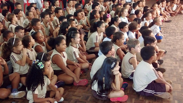A comunidade de aprendizagem aconteceu com a vinda dos contadores de história até a escola, onde realizaram a apresentação de uma peça teatral: “No meio do caminho de Alvinho”.
