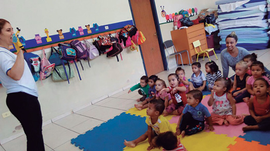 Movimento e Música: músicas que envolvem as brincadeiras; Linguagem oral: expressão oral, contação de histórias; Matemática: noção de cores, contar, noção de tamanho, alto baixo, grande pequeno, quantidade, dentro, fora, classificação e seriação; Natureza e Sociedade: compartilhar brinquedos, cuidar de brinquedos; Arte Visual: pintura com guache e giz de cera, colagem, fantoches, impressões com a digital; Identidade e autonomia: socialização, cooperação e ajudar o outro.