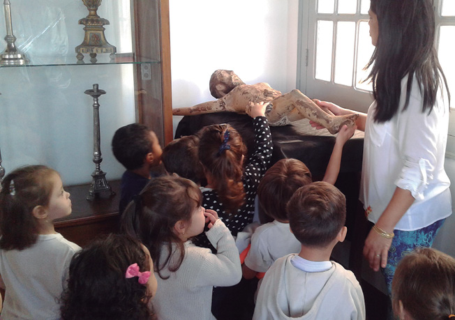 A expedição investigativa foi realizada na Casa da Cultura de Mococa/SP, com apoio de uma monitora do espaço, que apresentou aos alunos do Maternal 2 as diversas formas de arte relacionadas com o corpo humano, tais como pintura e escultura. As crianças complementaram a atividade com um city tour, visualizando esculturas em tamanho real e em diversos pontos da cidade.