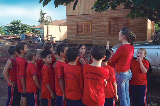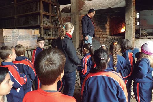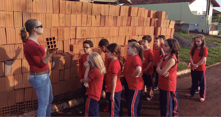 Visita a Olaria Paranaguaçu, na localidade do Arroio Guaçu, para aprender o passo a passo da fabricação dos tijolos. Visita orientada por um dos proprietários, Senhor Antônio Martins, que fez toda a explicação do seu funcionamento, desde a chegada da argila até o tijolo pronto. Visita a uma propriedade rural para observar uma casa situada no campo agropecuário e todos os elementos que acercam, comparando assim com as casa da cidade e da floresta.