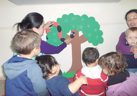 Visita de músicos locais. Envio de um CD com músicas infantis para a família, visando maior interação entre pais e filhos.