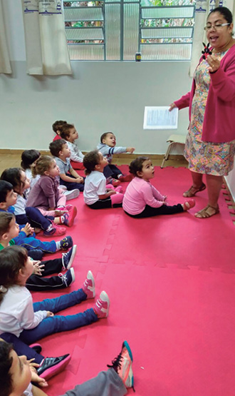 Linguagem Oral e Escrita: contação dramatizada e com uso de objetos concretos de uma vasta variedade de histórias da literatura infantil; Matemática: identificação e nomeação das cores, contagem dos personagens e noções de grandezas; Artes Visuais: confecção individual e coletiva de uma gama de atividades de ordem artística para concretizar elementos das histórias; Natureza e Sociedade: desenvolver a habilidade de trabalhar em grupo; Identidade e Autonomia: trabalhar a noção de mim e do outro relacionado ao respeito à diversidade; Música e Movimento: Histórias cantadas ou inseridas às histórias contadas com gestos direcionados.