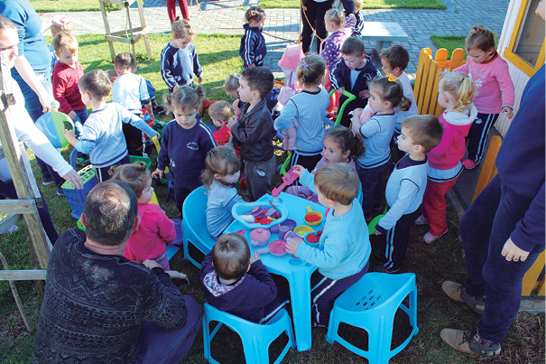 Com os professores e direção do CMEI, em conjunto foram pensadas em melhorias do espaço da casinha, que se encontra no bosque, sem brinquedos adequados para as crianças.