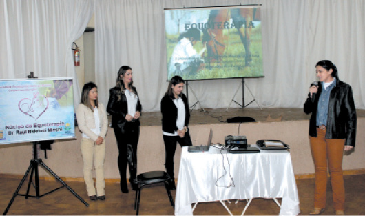 Palestra com os profissionais do Núcleo de Equoterapia da UENP de Bandeirantes: fisioterapeuta, psicóloga e fonoaudióloga; Visita na APAE do munícipio de Bandeirantes – PR; Doação de um cavalo ao Núcleo de Equoterapia e alimento para consumo do mesmo.