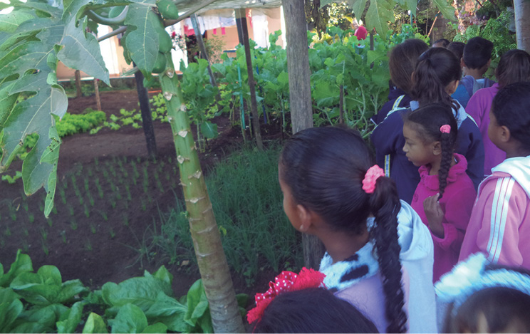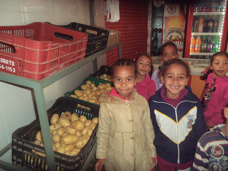 Visitamos o supermercado e a horta da comunidade, integrando estes espaços ao trabalho escolar.