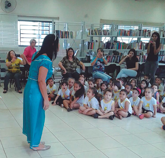 Foi realizado à Biblioteca Municipal Albertina Peron Uchôa um passeio no dia 29 de maio de 2017. A professora Martinha nos contou a história A Gata Borralheira que virou a Cinderela, usando como recurso um varal com cartazes ilustrando a história. Foi um momento de encantamento para as crianças, pois, além da história, a professora demonstrou muito afeto e carinho para com as crianças.