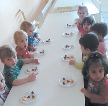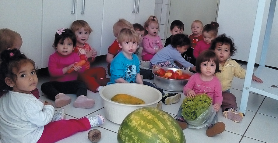 Matemática: formas, quantidades e tamanhos; Música: imitar, inventar e reproduzir criações musicais; Artes Visuais: observação e identificação de imagens; Linguagem Oral e Escrita: identificar e nomear os alimentos, estimular a fala; Identidade e Autonomia: interesse em experimentar novos alimentos.