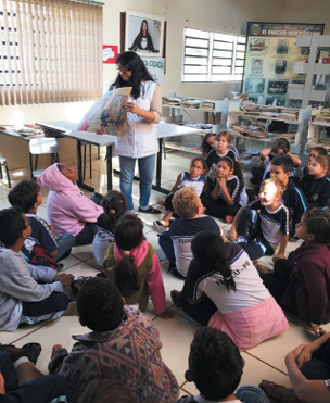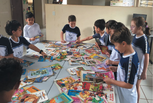 Foi realizada na Biblioteca Cidadã do município de Floraí, com exploração visual dos livros selecionados e contação de uma fábula pela professora.