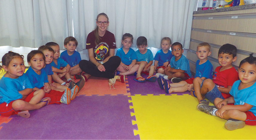 O projeto teve como objetivo conhecer mais sobre os animais, especialmente sobre o pintainho, que as crianças levaram para casa para cuidar durante um dia.