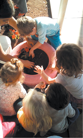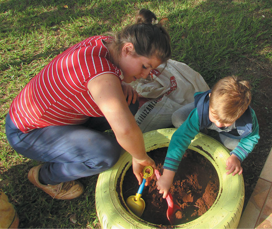 A psicóloga Raquiel realizou uma palestra com os pais sobre valores. Os pais participaram do plantio de flores nos pneus que as crianças haviam pintado durante as atividades do projeto. Foram confeccionadas duas sacolas, onde as crianças levaram brinquedos emprestados dos colegas para brincar em casa.