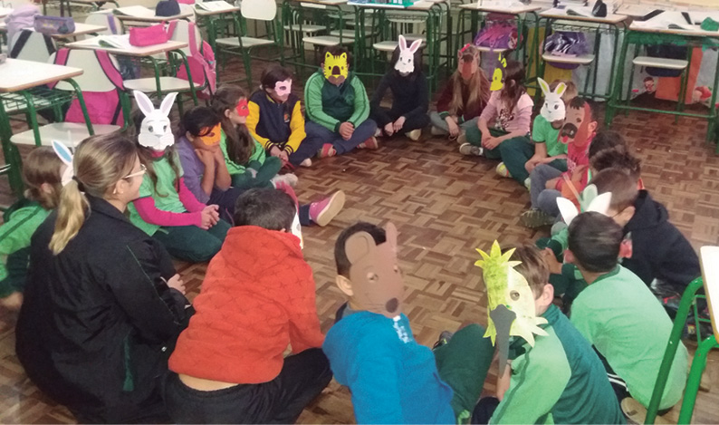 Os alunos demonstraram muito interesse quando ouviram uma história contada de forma diferente com a utilização de máscaras e queriam ouvir novamente.