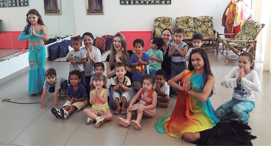 A expedição investigativa ocorreu em uma academia de dança do ventre, onde as crianças assistiram a apresentações de dança e participaram de alguns exercícios de movimento.