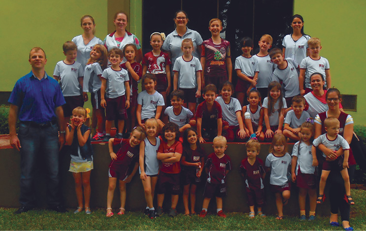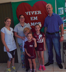 Pastor Sandro nos recebeu com muita alegria, tocou violão, cantou músicas, fez oração, contou uma historinha e nos mostrou as instalações da Igreja, do ginásio e das salas de aula. Falou sobre as diversas atividades que as crianças que participam desta comunidade desenvolvem no decorrer do ano com objetivo de louvar a Jesus.