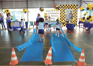 Linguagem oral e escrita: leitura de textos; histórias, parlendas em relação ao tema; escrita e desenho; atividades com alfabeto móvel; Matemática: noções de volume (cheio/vazio); situações problemas envolvendo a água; Natureza e Sociedade: observação do ciclo da água, e do desperdício nas situações cotidianas; pesquisas de figuras que mostram rios limpos e rios poluídos; Artes Visuais: desenhos livres sobre o tema; recortes e colagens; maquetes; cartazes.