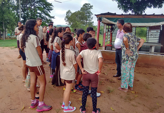 Na expedição investigativa, os alunos dos 5º anos foram até o sítio da Dona Zulmira, situado no Município de Tamboara, para conversar com ela, que é pioneira do município, para saberem um pouco mais sobre a colonização da cidade.