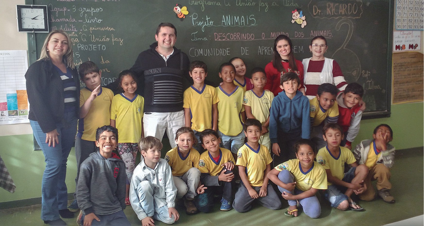A comunidade de aprendizagem foi realizada através de uma palestra com o veterinário Ricardo Domingues Gonçalves que, com entusiasmo, mostrou slides sobre animais e respondeu as curiosidades sobre o projeto que estamos desenvolvendo. Ele abriu espaço para que todos os alunos realizassem as perguntas destacadas não só no índice formativo, mas outras que surgiram. Para finalizar, falou sobre o cuidado que devemos ter em relação aos mesmos sobre seu habitat, alimentação, comportamento, higiene e saúde.