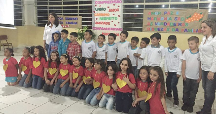 Festa da família na escola, quando foi feita a exposição dos trabalhos realizados pelos alunos, uma apresentação musical, mensagens e a entrega de lembranças no final.
