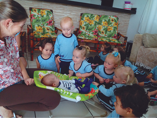Passeio na casa da Professora Sonia – conhecer o bebê Gabriel. Famílias – envio da mala viajante com a história “Douglas Quer um Abraço” e o urso mascote para casa. Encontro e dinâmicas com as mães no CMEI. Doação de porta retrato para as mães – CMDCA. Doação de um urso de pelúcia – APMF – Associação de pais, mestres e funcionários. Doação de lanche para encontro com as mães – APMF – Associação de pais, mestres e funcionários.