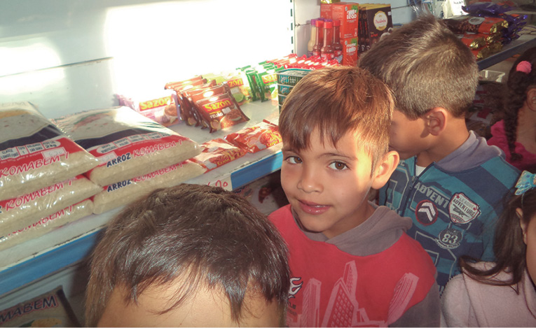 Visitamos o supermercado e a horta da comunidade, integrando estes espaços ao trabalho escolar.