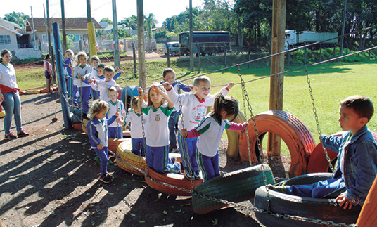 Atividades dirigidas pela professora de Educação Física Bruna F. K. Loscheider. Brincadeiras ao ar livre com pneus e exploração dos mesmos. Doação de tintas, pneus, cordas e madeiras pela comunidade local. Posteriormente será solicitada a participação dos pais na construção do parquinho com pneus. Coleta de pneus com a comunidade em geral.