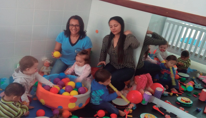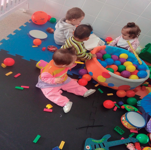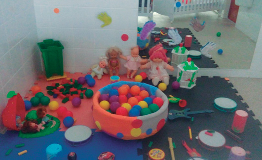A expedição investigativa foi realizada na própria sala de aula, onde foi montado um cenário com vários itens espalhados pelo chão com diferenciadas texturas, brinquedos variados, bonecas, piscina de bolinhas e diversos objetos sonoros.