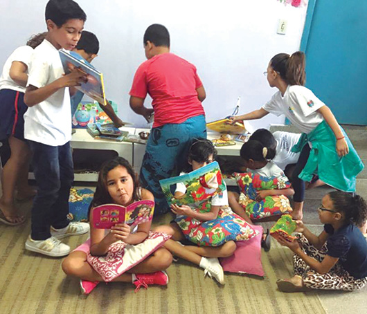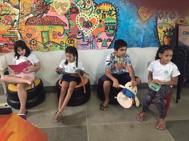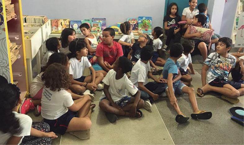 Visitas às bibliotecas com ênfase nas diferentes atividades realizadas no local. Contação de história por Delva Parpinelli.