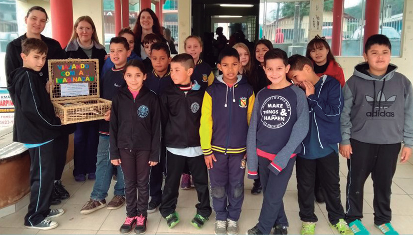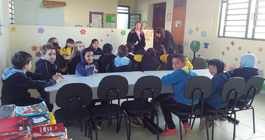 Oficina com a bibliotecária Eva Regina Salak por meio de contação de história. Arrecadação de livros doados pela comunidade escolar, sendo organizada uma biblioteca itinerante no posto de saúde para aproveitamento dos livros enquanto as pessoas aguardam consulta.
