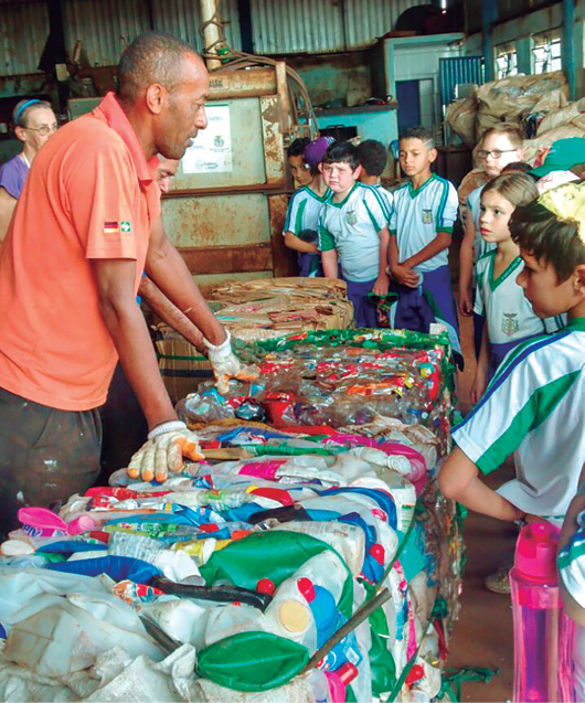 Conscientização sobre poluição, classificação do lixo e como ele pode ser reutilizado ou reaproveitado.