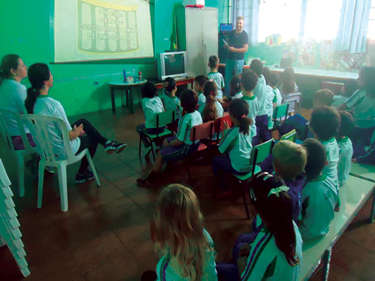 Foi convidado o responsável pelo meio ambiente do município para realizar uma palestra com as crianças. Durante a palestra, ele utilizou recursos como retroprojetor e vídeos, passando a mensagem de como devemos cuidar do nosso meio ambiente. Depois realizou algumas atividades com as crianças para uma melhor aprendizagem. Foi feita também a entrega de panfletos pelas crianças para toda comunidade escolar.
