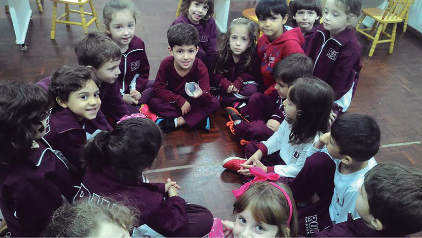 As crianças estavam brincando no parque da escola e ficaram muito eufóricas quando viram um inseto estranho a elas. Aproveitamos este momento para darmos ênfase ao que eles sabiam sobre o inseto e sanar as curiosidades que tinham sobre ele. As crianças levaram o louva-a-deus para a sala para cuidamos dele.