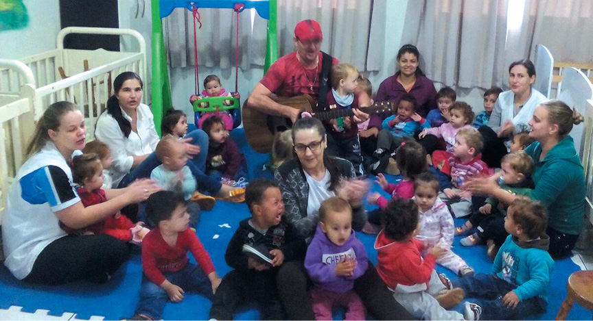 Movimento: expressão de sensações e ritmos corporais por meio de gestos, posturas e linguagem oral; Linguagem Oral e escrita: participação em situações de leitura de diferentes gêneros, como contos, histórias e músicas em gerais, ampliando o vocabulário estimulando a aquisição de palavras novas; Música: exploração, expressão de sons com a voz, com o corpo e com matérias sonoros diversos e a participação em situações que integrem músicas, canções e movimentos corporais; Artes visuais: exploração e manipulação de materiais com diferentes texturas e espessuras, observando as diversas imagens.