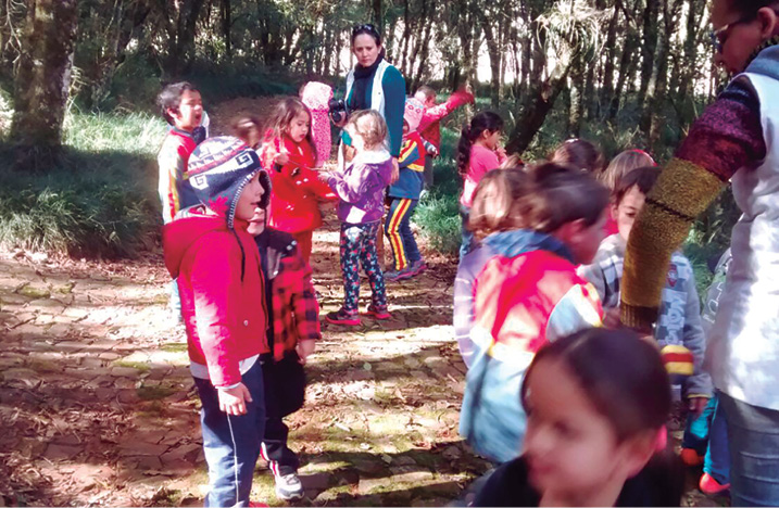 Passeio na Comunidade Christus Dominus, onde percorremos uma trilha na qual os alunos puderam observar a natureza. Aproveitando a admiração pelas árvores, pássaros, borboletas, rio, flores, etc., íamos explicando a eles a importância do cuidado e preservação da nossa natureza. Aproveitamos a oportunidade e foi realizado um piquenique com as crianças.