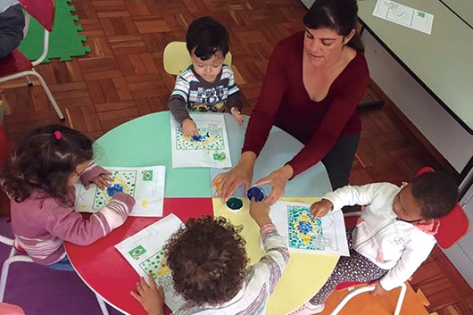 Português: linguagem oral, histórias, figuras ilustrativas e músicas; Matemática: contagem oral, formas geométricas, sequência lógica; Natureza e Sociedade: manifestações culturais, tradições; Artes visuais: desenho, pintura, colagem, reconhecer cores e formas; Movimento: música: samba e outros ritmos brasileiros.